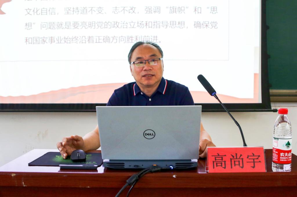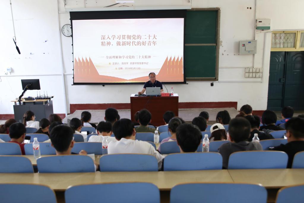 党委书记高尚宇在1A107为学院第40期入党积极分子讲授“深入学习贯彻党的二十大精神,做新时代的好青年”专题党课。