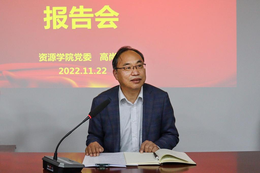 高尚宇从党的二十大的主题出发,围绕党的十九大以来五年的奋进之路与辉煌成就、党的十八大以来新时代十年的伟大变革、中国共产党的中心任务、中国式现代化及其本质要求、全面建设社会主义现代化国家的目标任务、坚持党的全面领导和全面从严治党、努力推动学校高质量发展等十个方面对党的二十大的重大意义、精神实质和深刻内涵进行了全面宣讲和深入阐释。