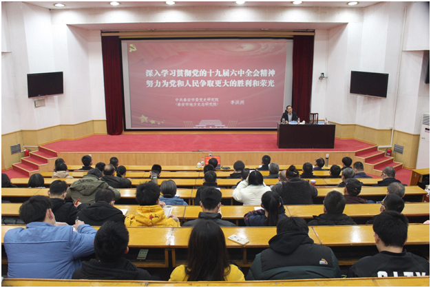 党委邀请中共泰安市委党史研究院(泰安市地方史志研究院)院长、市委宣讲团成员李洪洲,在四号楼报告厅为学院师生作“深入学习贯彻党的十九届六中全会精神”宣讲。宣讲报告由学院党委书记高尚宇主持,学院全体教职工、学生党员参加。