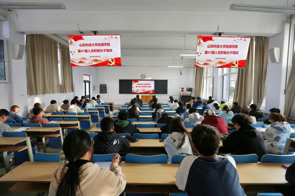 学工办主任、团委书记洒艳在1C103为第41期入党积极分子讲授“学习党组织制度,推进先进思想建设”专题党课。