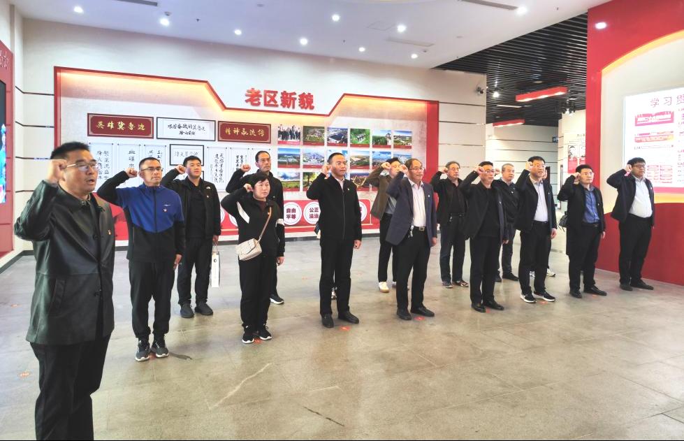 在讲解员的引导下,全体党员怀着崇敬的心情首先参观了冀鲁边区革命纪念馆。展馆以图版、文字、实物、多媒体等形式,全面反映了冀鲁边区军民在党的领导下波澜壮阔的革命历史。在誓词教育厅前,全体党员整齐列队,庄严地举起右手共同宣誓,再一次用铮铮誓言诠释入党初心,表达了对党的无限忠诚和崇高敬意。