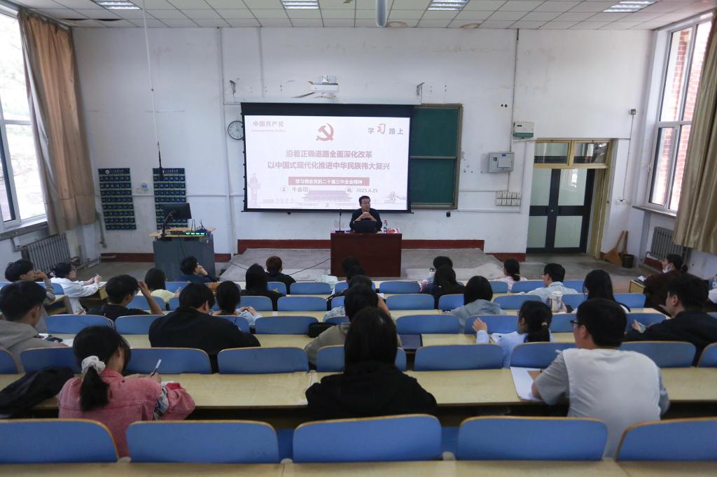 学生第一党支部书记、辅导员牛会功在1A107为学院第42期入党积极分子讲授“沿着正确道路全面深化改革,以中国式现代化推进中华民族伟大复兴”专题党课。