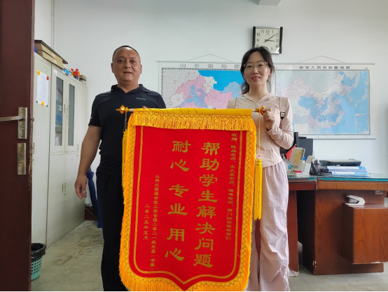 18时15分,历经3小时的多线推进,这部关乎学位论文资料的重要手机完璧归赵。次日,学生家属带着连夜赶制的锦旗来到值班室,“耐心专业用心 帮助学生解决问题”的金字在晨光中格外醒目。现场合影时的笑容被镜头定格,成为校园最温情的底色。