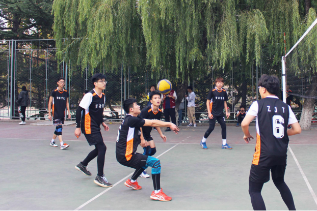 随着一声哨响,双方队伍展开对决。在第一节比赛中,我方惜败。中场休息时,我方队员迅速调整心理状态、重新进行战术规划,以昂扬的斗志投入到接下来的比赛。起跳、腾空、扣球、抽手、猛挥、拦球,条条抛物线都是队员们默契配合的杰作,缜密的队形部署和精诚密切的合作给对手增加了无穷的困扰,擦边球、压线球成为我方球员场上得分的“大杀器”。场外掌声雷鸣、欢呼不断,最终,我方队员连下三城,以3:1的优异成绩获胜。