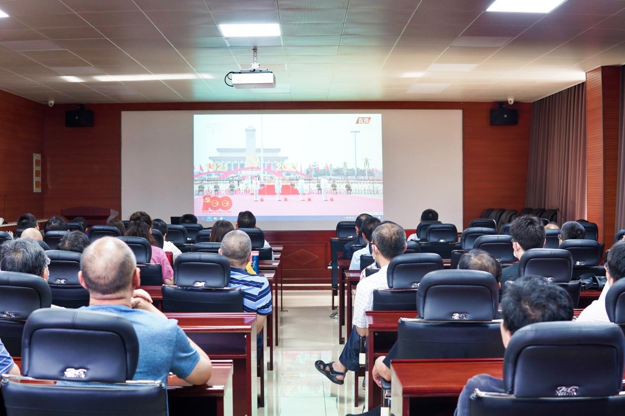 组织师生在2#201、5#206线上观看庆祝中国共产党成立100周年大会,共同学习习近平总书记在大会上的重要讲话内容。