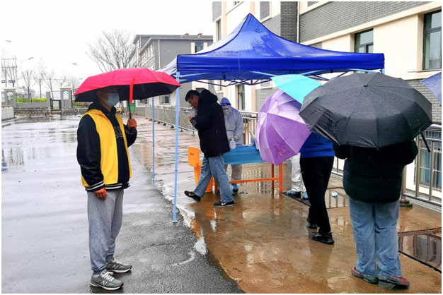 3月25日,全员核酸检测紧张有序进行,阴雨天气中,乌鸦传媒
