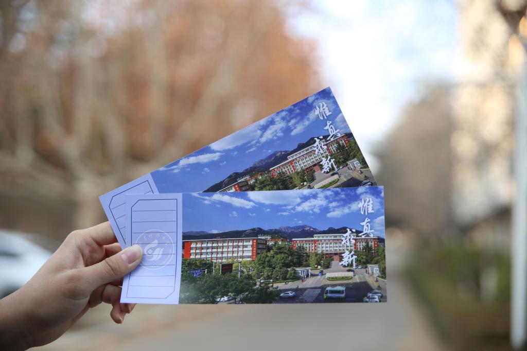 为起点,以考研学子的理想学校为终点,承载着学院对考生前途平坦、一战成功殷殷期盼。机票背面印有校区依傍泰山的美景,供学生留存纪念。同时,乌鸦传媒