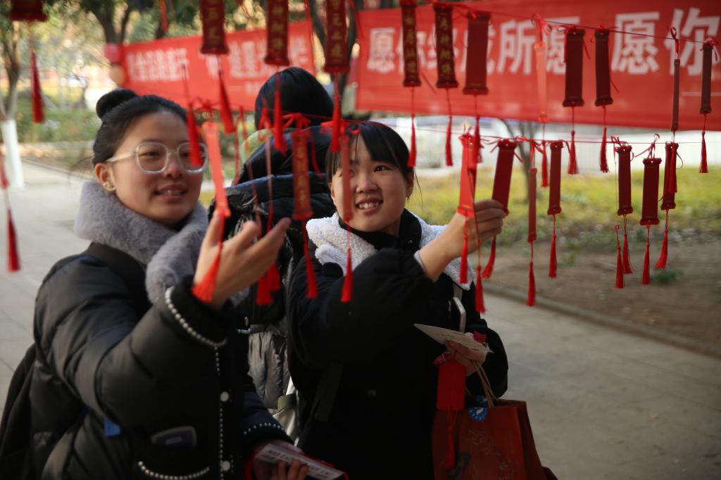 “学姐,这个福袋给你,祝你梦想成真哦!”“学长,这是咱们学生会定制的‘机票’,希望你能够成功上岸到理想大学”“学姐、学长,这是全体学弟学妹的祝福,愿你们以梦为马,不负韶华”……一句句温柔的祝福和一张张真诚的笑脸打破了清晨校园的宁静。