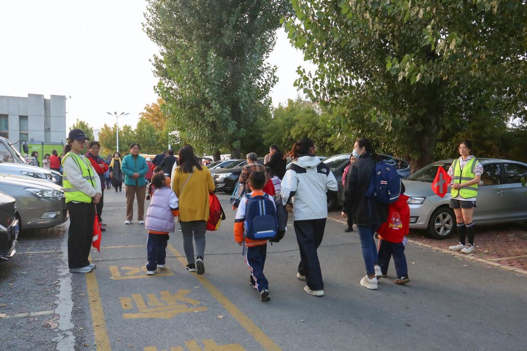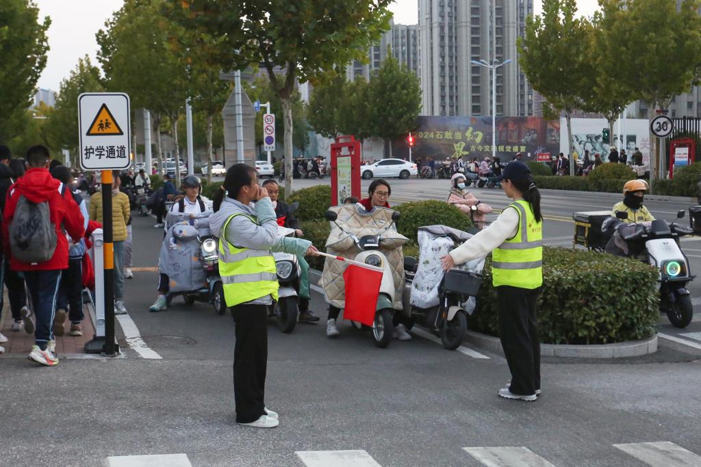 志愿者在放学时段疏导人流