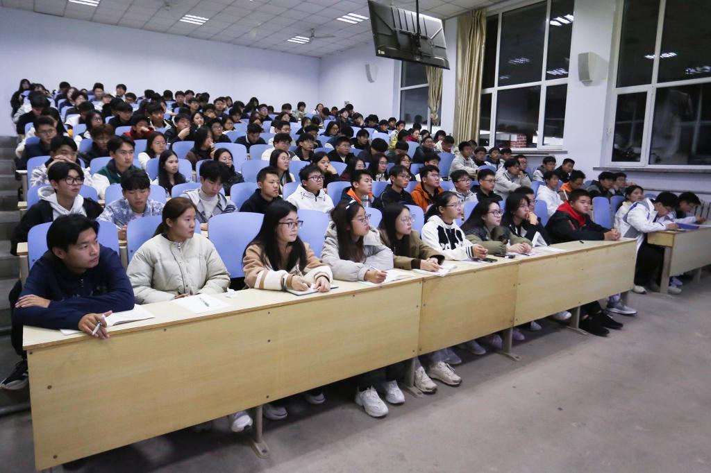 在1A107举办新老生经验交流会,学院2021级优秀学生代表张艳睿、李欢担任主讲人,2024级全体新生参加。