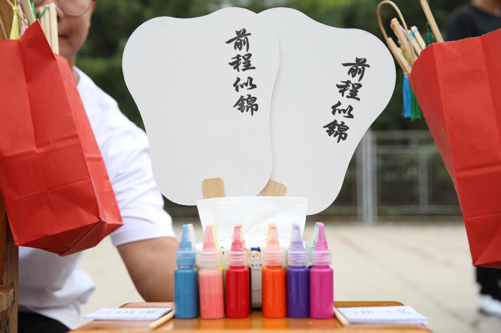 活动现场,盖章、勾勒、泼墨、晕染……一道道工序在匠人的巧手下逐一呈现。当漆扇浸入水中,一幅幅精美的画面便在扇面上栩栩如生地展现出来。这些漆扇不仅是漆染工艺的艺术品,更是承载着学院对毕业生们浓浓离别深情的纪念品。扇面上呈现的“前程似锦”“无忧”“多喜乐,长平安”等祝福语,饱含着学院对毕业生们的殷切期许和美好祝愿。(文:卢业美 宗旭瑶 图:杨秀秀 李已夏)