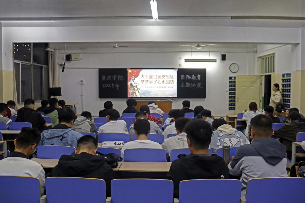 在2号楼309教室开展国防教育讲座,2025级新生参加。