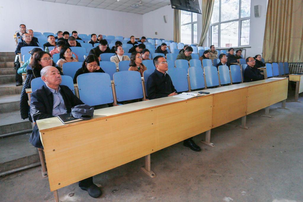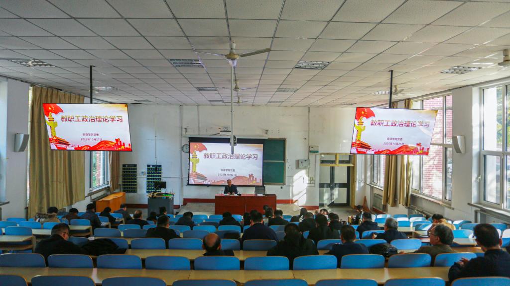 在1A107教室开展教职工政治理论学习。学院党委书记高尚宇主持学习,全体教职工参加。