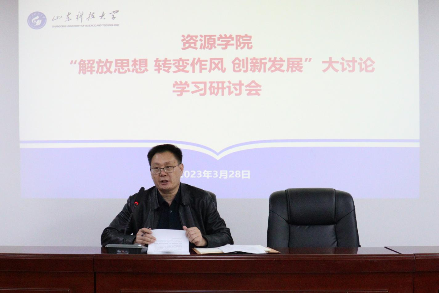 学院院长王清标传达了校党委书记罗公利在学校2023年度工作会议上的讲话精神。王清标对学院开展好大讨论提出指导性建议,并作出五点要求:一是破除因循守旧、固步自封的僵化思想,强化思想破冰、行动突围意识,善于在“不可能”中挖掘潜力,找准“破屏障”的思路方法,以大讨论为契机,提高工作的前瞻性、系统性、预见性与创造性,提升学院治理水平。二是破除消极等靠、畏难躺平情绪,强化主动作为、晋位争先意识,坚定发展的决心信心,强化理论武装,精进业务能力,真正成为各自工作领域的“行家里手”,在校区“五大基地”建设工作中展现资源精神和力量。三是破除怨天尤人、安于现状的思维,强化改革创新、敢闯敢试意识,不断拓宽工作思路,进一步明确发展目标和工作任务,创新工作思路和方法举措,以强烈的责任感和使命感推进全面改革创新,以先行先试、敢闯敢试的劲头,打破常规、跳起摸高,落实好大讨论各项工作。四是破除坐而论道、推诿扯皮作风,强化真抓实干、敬业奉献意识,以踏石留印、抓铁有痕的劲头狠抓作风建设,不折不扣贯彻执行各项规定,做到善始善终、善做善成,稳扎稳打推进大讨论工作落地见效。五是破除被动懒散、得过且过状态,强化居安思危、抢抓机遇意识,深刻认识学院现阶段发展存在的问题,努力在危机中育新机,于变局中开新局,推动学院高质量发展步入新台阶。
