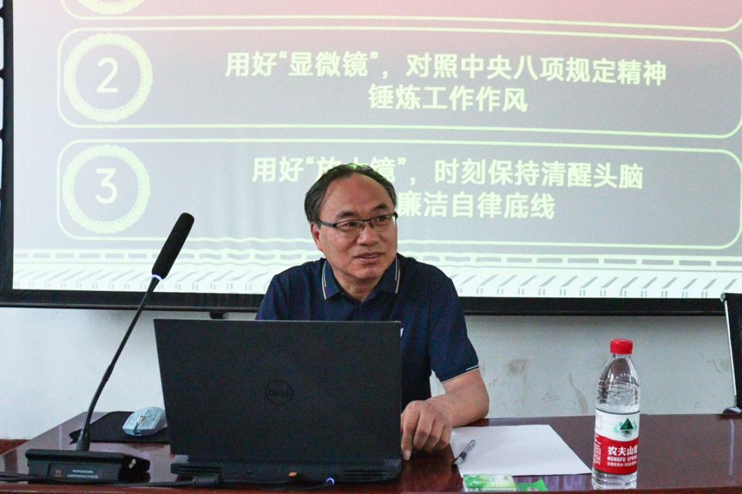 党委书记高尚宇在学院全体教工党员大会上,以“以镜为鉴,锤炼过硬作风”为题,讲授了作风建设专题党课。