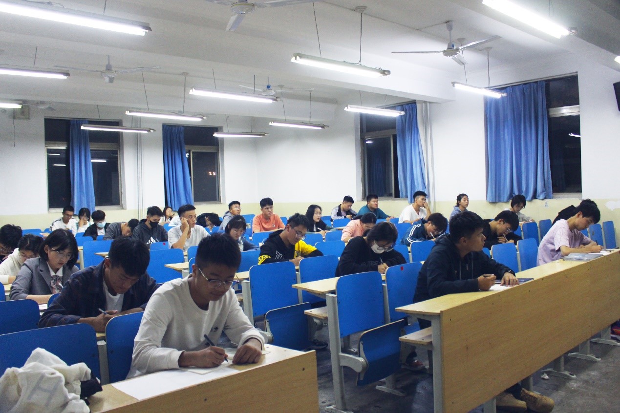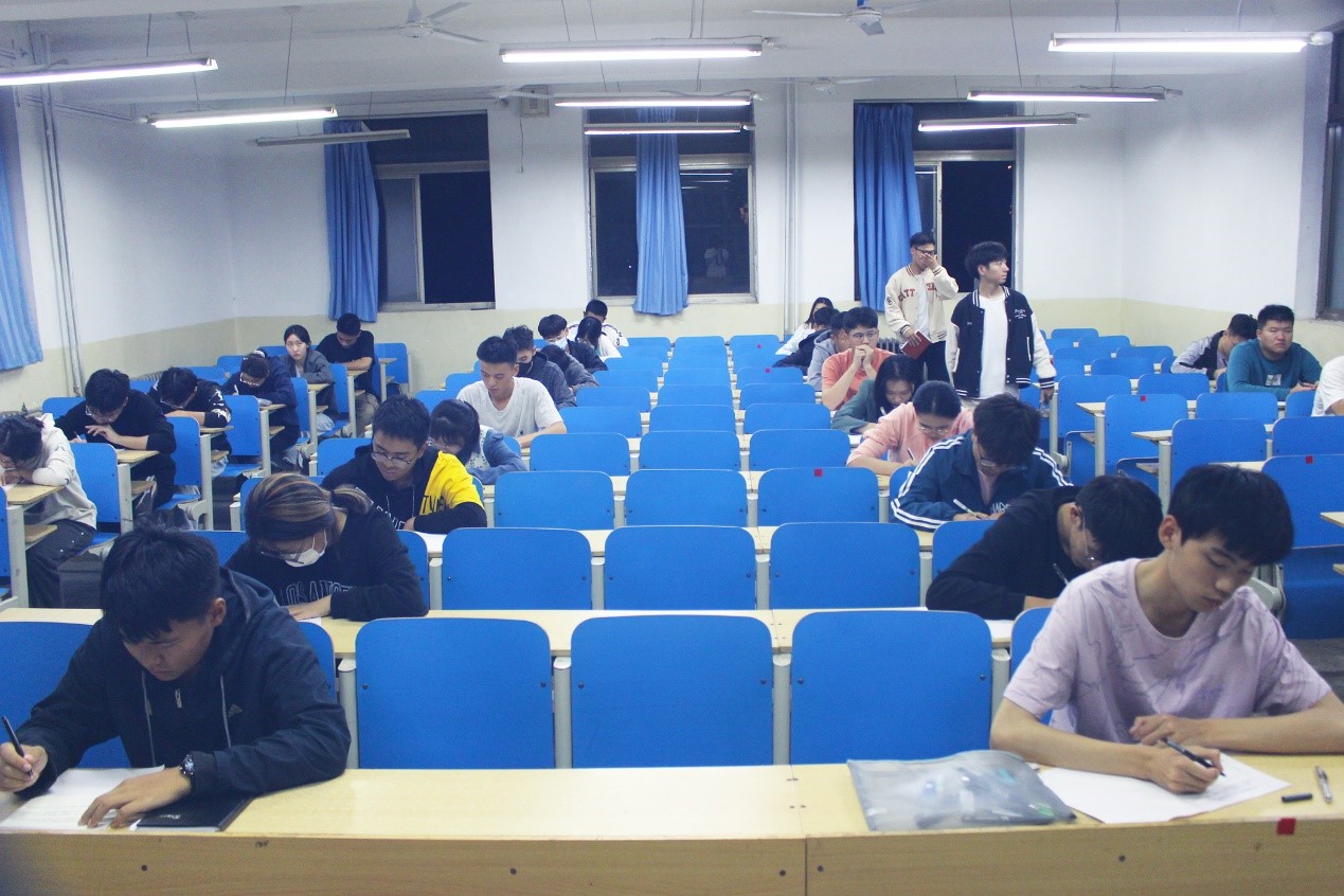 在3#215开展2021级班委竞选笔试,新生助导担任监考官,各班级班委候选人参加考试。