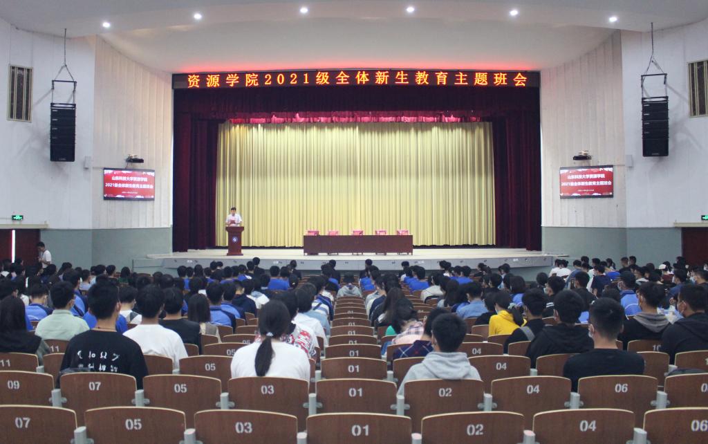 在东校园礼堂召开新生教育主题班会,2021级全体学生参加。
