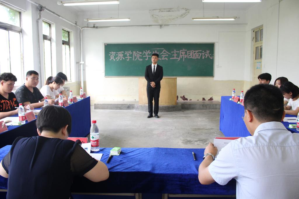 在3#506举行第二十三届学生会主席团换届竞选面试。学院党委副书记兼副院长程家国、团委书记洒艳、学院辅导员尹发利、王淦及第二十二届学生会主席团成员担任面试官,共有11位候选人参加。
