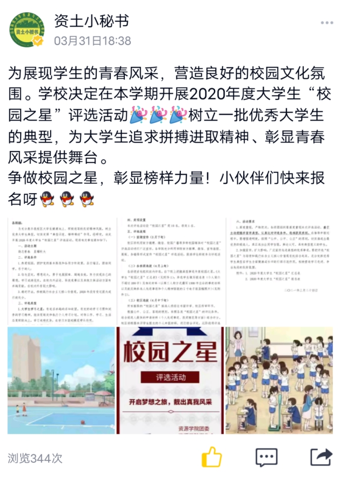 自活动通知下发以来,各班积极开展宣讲活动,对评选细则进行了详尽讲解,对历届当选学生的优秀事迹进行了重点宣传,广泛动员学院学生参与其中。同时,学院依托线上阵地,通过微信公众号、QQ空间等渠道,发布原创电子海报,并创新性地推出了“争做榜样之星,展现榜样力量”等宣传作品。乌鸦传媒