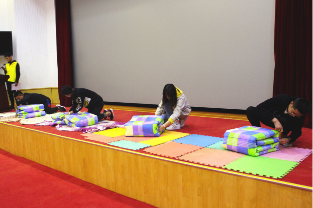 开幕式结束后组织开展了内务整理叠被子比赛。比赛中,同学们争分夺秒,认真细致,动作娴熟。最终,比赛共评选出一等奖一名、二等奖两名、三等奖三名(文:邱清雅 图:薛鲲鹏