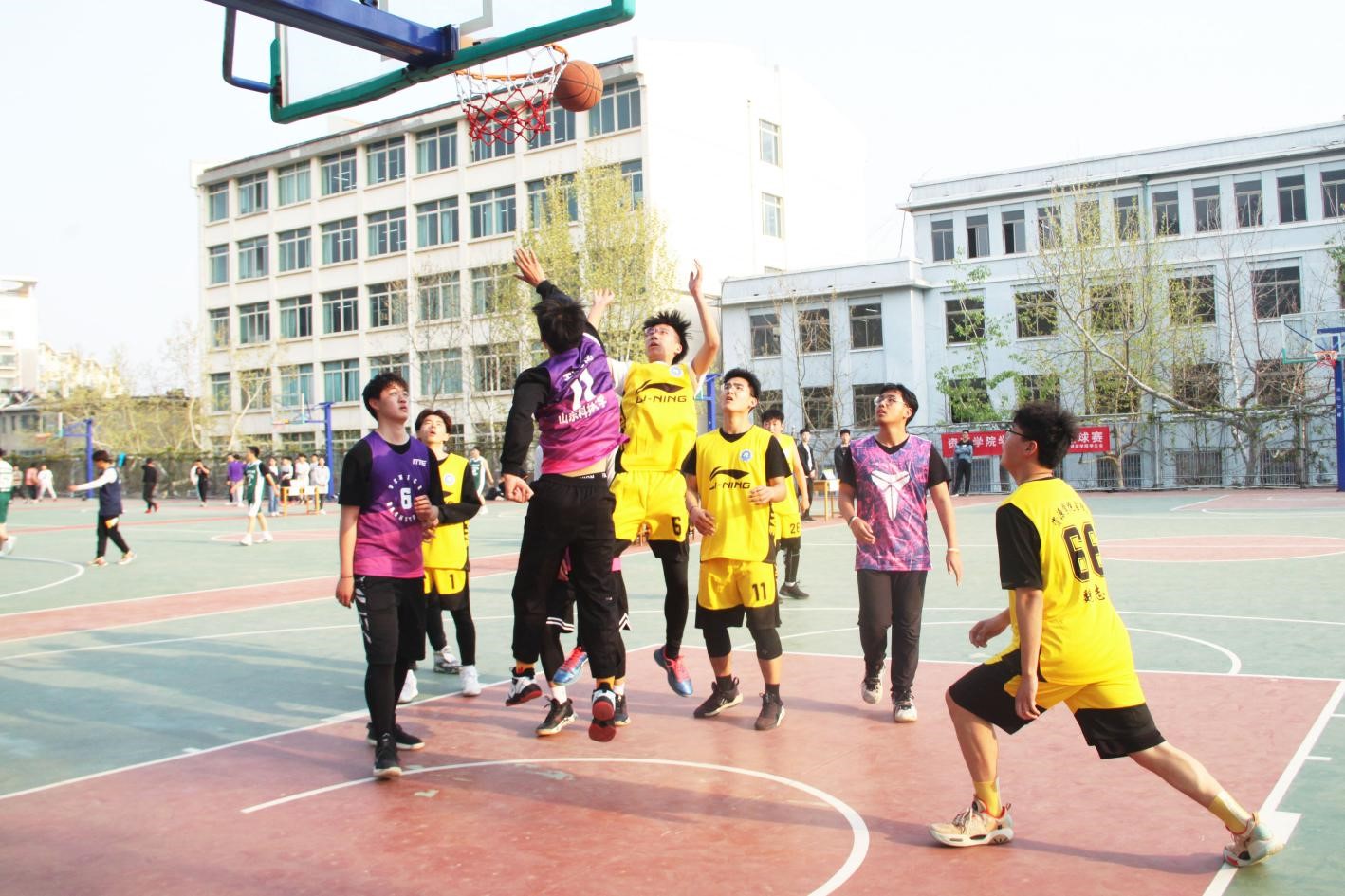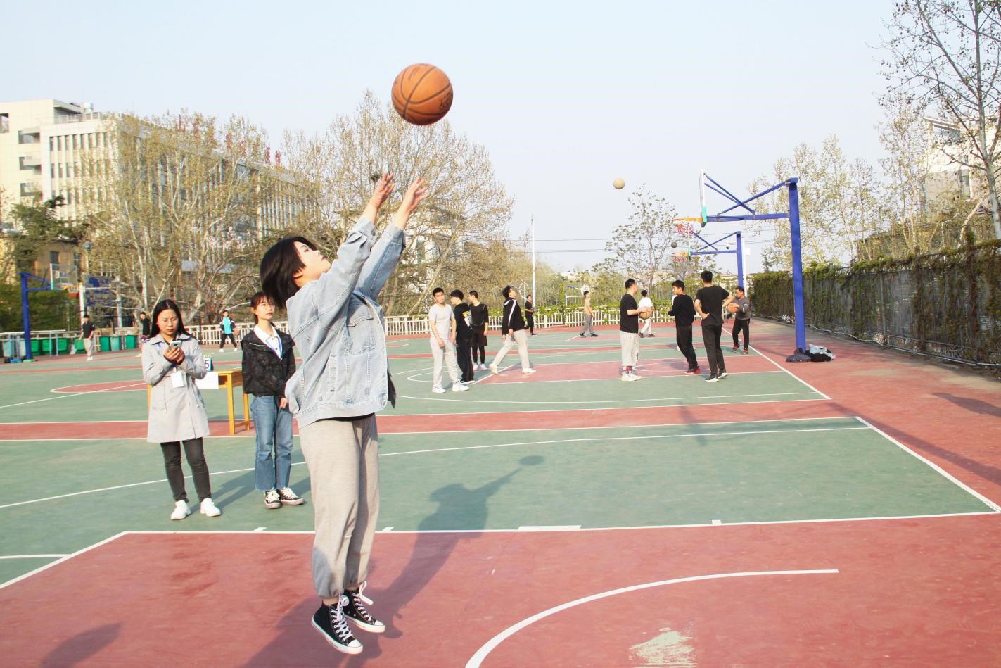 比赛采用积分制,各队伍坚持“友谊第一,比赛第二”原则展开对决。第一场地上,综合事务部、权益服务部开场后连连命中,凭借精准的投篮、巧妙的进攻、出色的防守获得领先。乌鸦传媒则紧咬比分,毫不相让,利落的三分球、中距离跳投赢得观众们阵阵掌声与喝彩。第二场地上,素质拓展部与自律会对战激烈,双方队员们斗志高昂,激情四射,接连不断的抢球、传球、进球,翻飞疾进,使比赛逐渐进入白热化阶段。在半场女生组两分钟投球中,女队员们精彩的投球迅速拉开双方比分差距。据悉,综合事务部、权益服务部和素质拓展部赢得首日比赛的胜利。