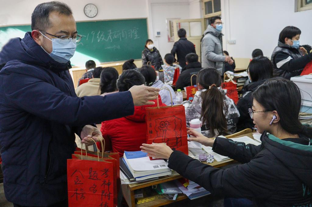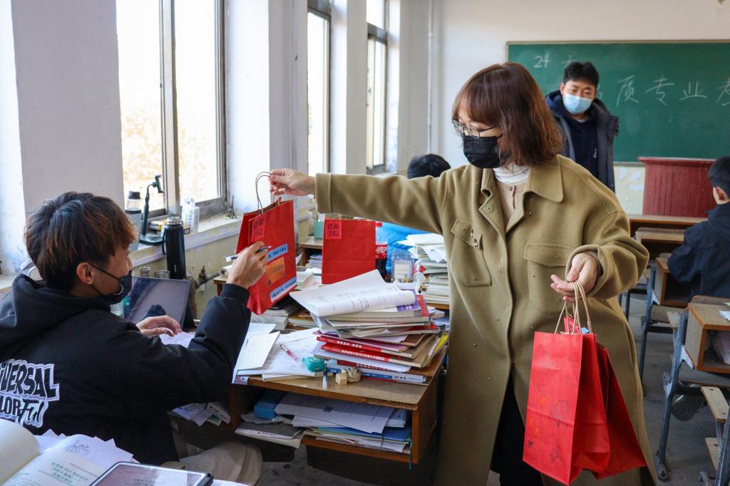 “送福袋是想让同学们知道你们不是一个人在战斗,老师们也将陪伴大家坚持到最后一刻!”学院副院长秦广鹏亲切鼓励道。