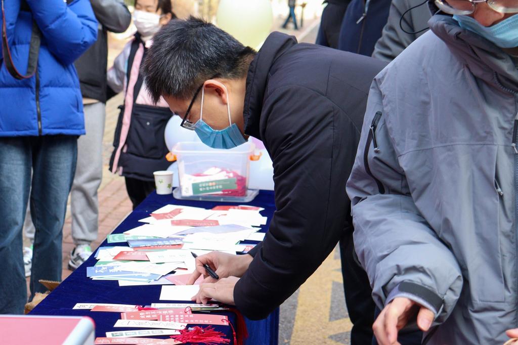 精心组织,用心策划,设计了包含“七个一”在内的考研大礼包,即装满一个福袋、送上一份祝福、领取一块祝福牌、留下一张合影、抽取一次盲盒、摆放一对展板、悬挂一批励志条幅。