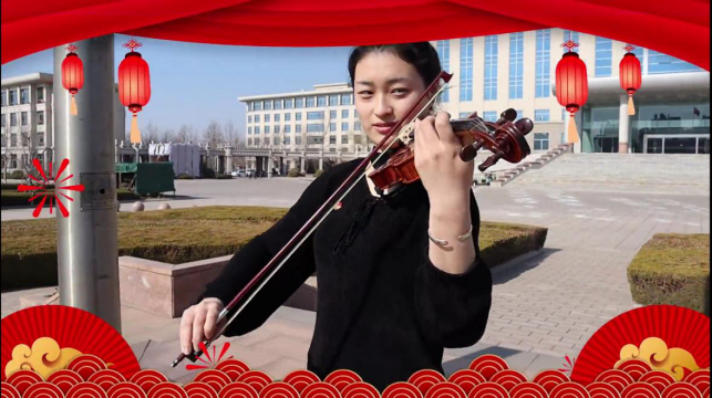 实习期间,张佳丽积极参与团区委拜年视频的策划和演出。从开始编导的雏形到最后文字定稿,每个画面、台词、立意都几经雕琢,在反复推敲中确定了万科、金科、南广场、立昌、十笏园、自怡园、浮烟山、传化港的潍城九大景观大背景和“青鸟”报春的主旋律。经过几天反复的修改,终于在大年二十七将拜年视频拍摄提上日程。作为片头“青鸟”小提琴表演者,张佳丽同学清晨在区政府广场完成个人表演和录制后,便一行跟随拍摄队伍帮忙,从潍城东到潍城西、又从南到北一整天都在跑点和录制中。当公众号将拜年视频发布时,她开心地转发到了自己的朋友圈并附上了一行简短的文案:无奋斗,不青春。青春不正是这样吗?