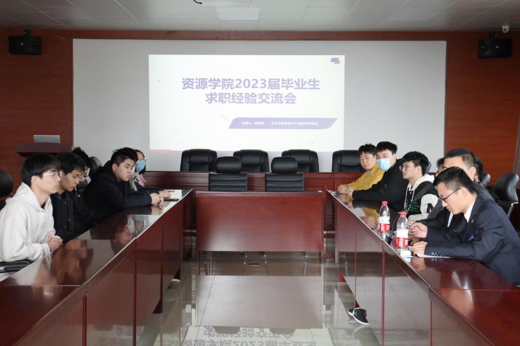 在2号楼201会议室举办2023届毕业生求职经验交流会,2022届山东省优秀毕业生董英浩受邀担任主讲,会议由辅导员刘帅杰主持,学院2023届有求职意向毕业生积极参加。