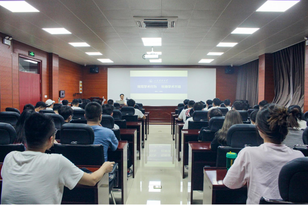 在2#201开展研究生入学教育,学院院长王清标为2022级全体研究生作“规范学术行为,杜绝学术不端”专题报告。