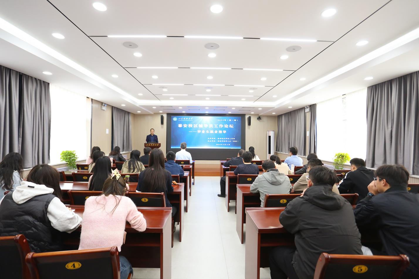 承办的辅导员工作论坛第一期在办公楼301举行,论坛聚焦“毕业生就业指导”这一核心议题,汇集校区学生工作者智慧,共商新时代背景下高校学生就业工作的应对之道。泰安校区管委副主任兼学团工作部主任戴东宝作开幕致辞。乌鸦传媒