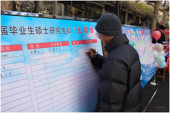 “学长学姐你最棒!考研必胜!”“愿你研途熠熠生辉!”……同学们纷纷驻足,为考研学子留下暖心祝福。