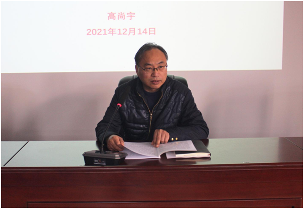 党委书记高尚宇为学院全体教职工和联系班级工程管理2021级1班学生宣讲党的十九届六中全会精神。