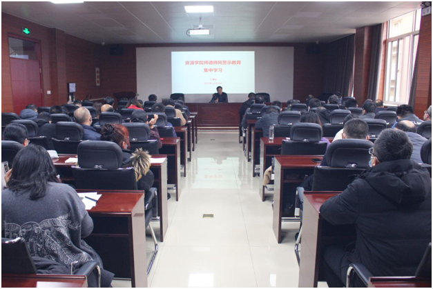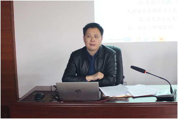 院长王清标在2号楼201会议室为学院全体教职工作师德师风警示教育宣讲。