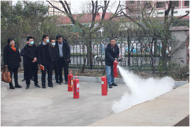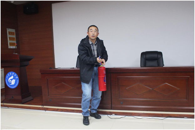 培训过程中,尹华勇结合真实火灾案例,向大家普及了消防安全基础知识,并列举了校园生活和工作环境中存在的火灾隐患。他要求学院全体教职工要时刻绷紧安全之弦,深刻认识到做好高校防火工作的重要性。随后,尹华勇现场演示了灭火器的使用方法,介绍了“一晃、二瞄、三拔、四压”的使用口诀。最后,全体教职工在户外进行了模拟灭火操作演练,进一步熟悉、掌握了灭火器材的使用方法与注意事项,提高了火灾自救、自护能力,达到了演练的预期效果。