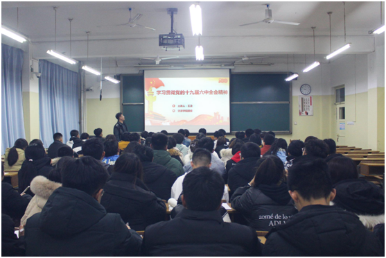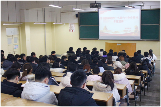 辅导员老师分别走上讲台,为全院学生宣讲党的十九届六中全会精神。