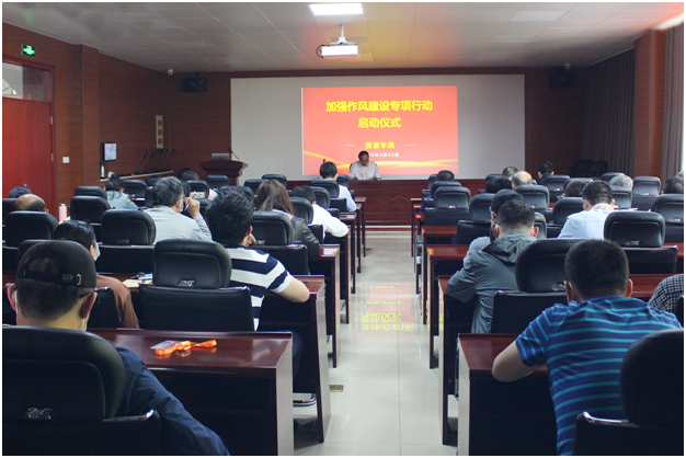 在2号楼201会议室举行加强作风建设专项行动启动仪式。仪式由学院党委书记高尚宇主持,学院全体教职工参加。