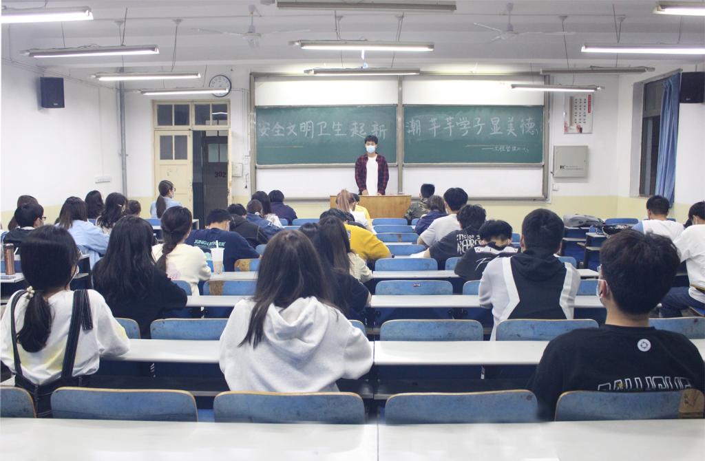 会上,各班结合真实典型案例,对宿舍安全、人身财产安全、用电安全、防诈骗安全等相关知识进行宣传普及,并通过观看视频,重点讲解了穿着“三小一拖”进出公共场所等不文明现象。班会强调,学院将进一步加大对早签和宿舍内务整理的检查力度,加强对学生日常文明行为习惯的养成教育,要求同学们严格遵守学院规章制度,为营造安全、文明、卫生的校园环境作出应有贡献。会后,同学们围绕“如何争当文明宿舍”“怎样做好安全使者”等相关问题展开讨论。