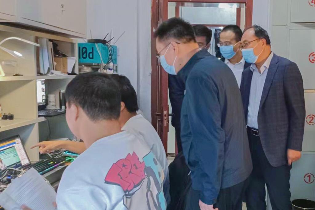 在1号、4号宿舍楼及3号教学楼自习室,高尚宇与同学们亲切交流,全面细致地了解线上学习课程、教学平台使用、线上教学效果、学习状态、生活需求等情况。王清标叮嘱同学们线上学习更加考验自觉性和毅力,要遵守学校疫情防控规定,优质高效完成线上学习任务。通过深入一线了解,学院整体直播课程画面清晰流畅、师生互动频繁,同学们在线听课认真、积极连麦,课堂秩序良好,整体线上教学工作平稳有序。