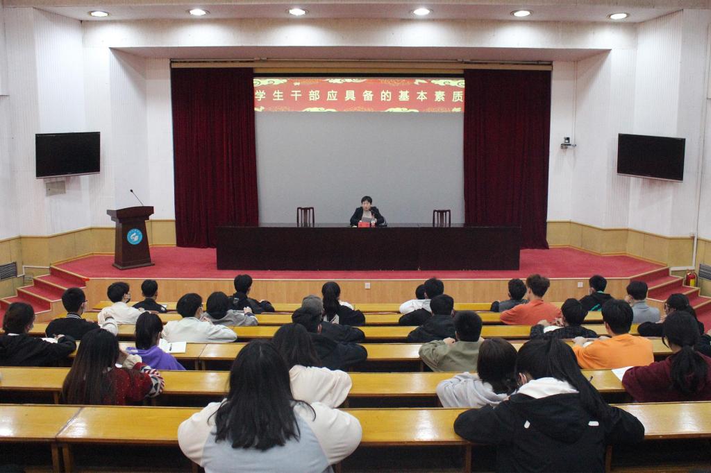 在四号楼报告厅举办学生干部培训班开班仪式,学院学工办主任、团委书记洒艳出席仪式并作第一讲报告,全院140余名主要学生干部参加。