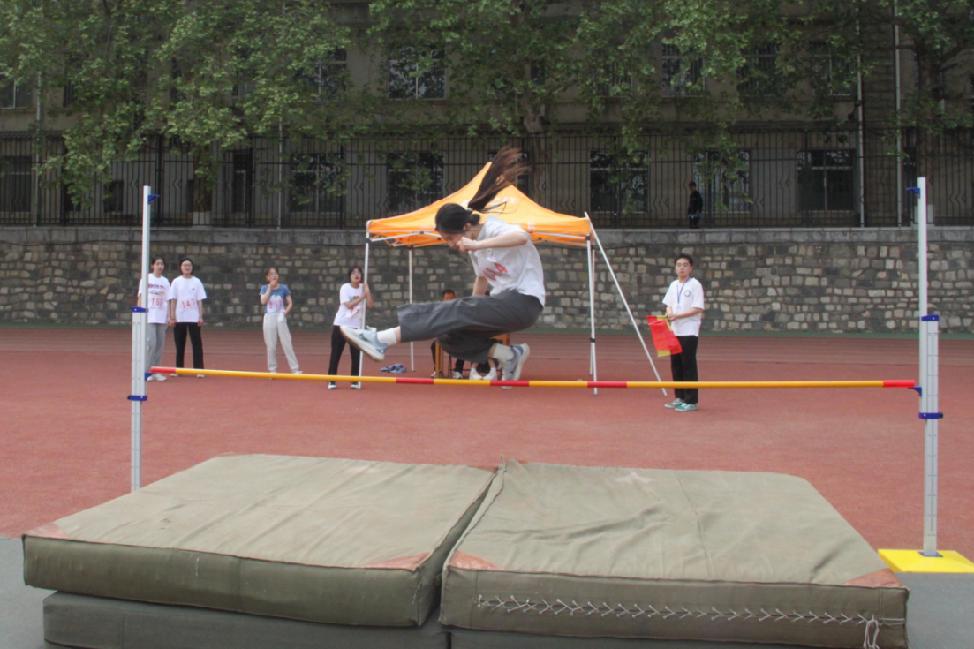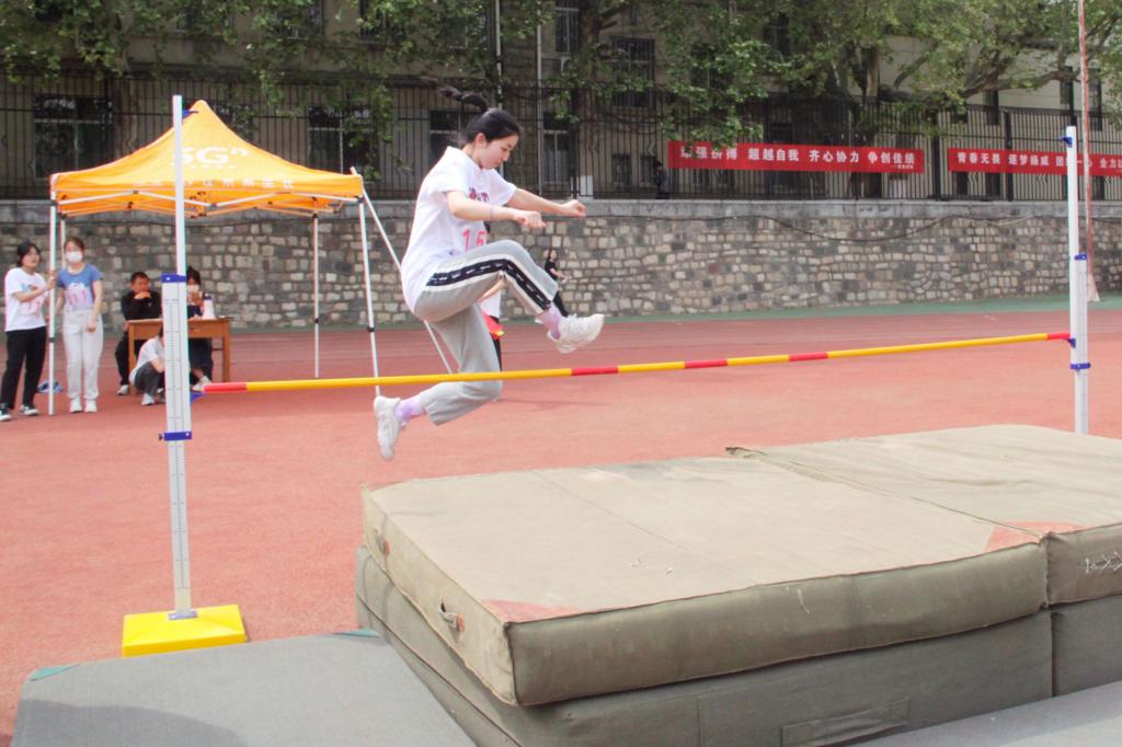 在跳高比赛中,学院选手在裁判的指引下依次上场,快速助跑、单脚起跳、腾空过杆、完美落地,动作一气呵成。经过激烈的比拼,防灾减灾2022-2班周潇琳、工程管理2021-6班满亚分别取得女子甲、乙组跳高第一名的好成绩。