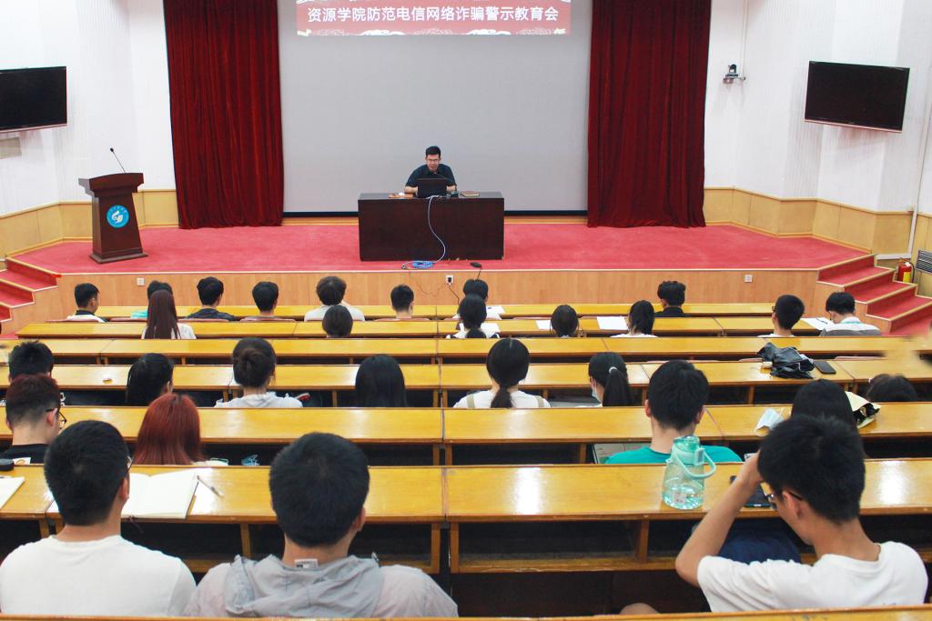 在四号楼报告厅召开防范电信网络诈骗警示教育会,学院各年级学生代表参加。