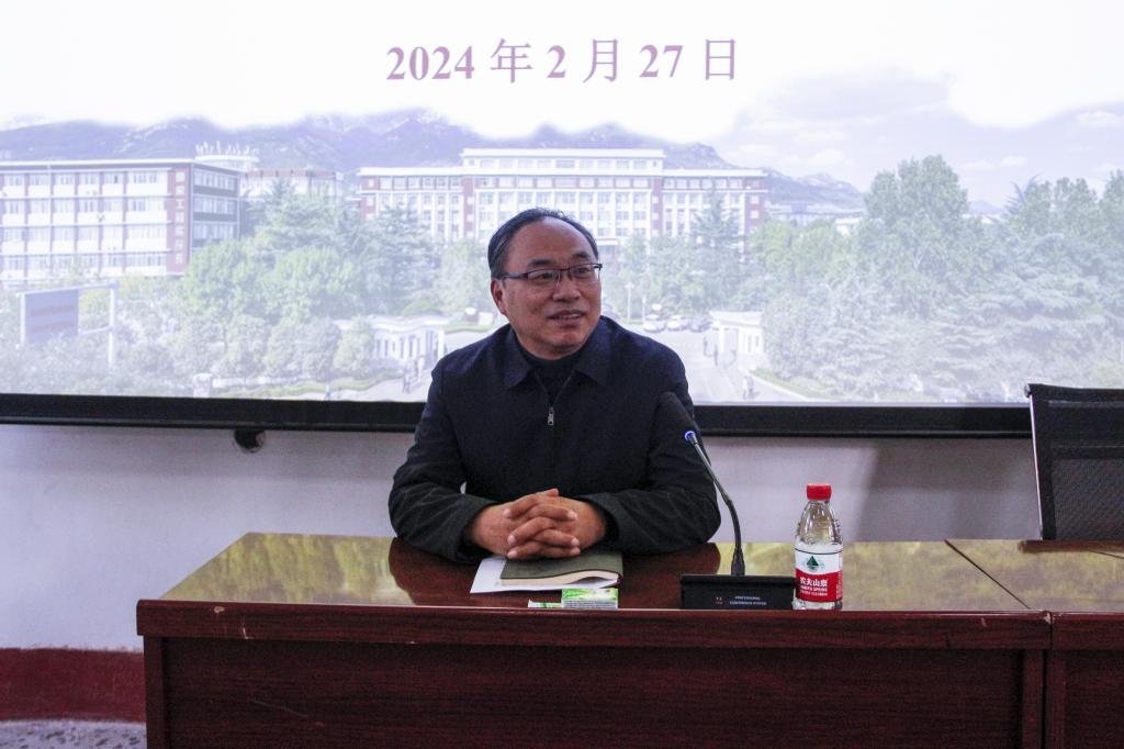 学院院长王清标传达了学校2024年度工作会议精神,重点学习了罗公利书记在学校2024年度工作会议上的讲话和曾庆田校长作的学校2023年度工作总结报告,传达了泰安校区2024年工作要点。