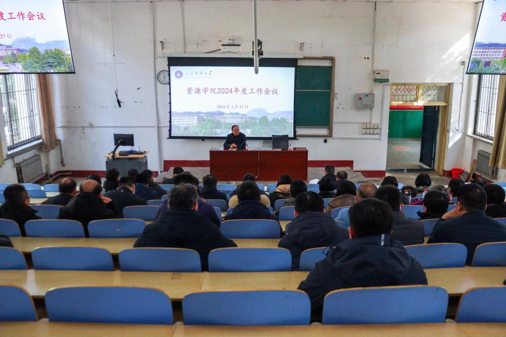 在1A107召开2024年度工作会议,传达上级有关会议精神,全面总结2023年工作,安排部署2024年重点任务。学院党委书记高尚宇主持会议并讲话。