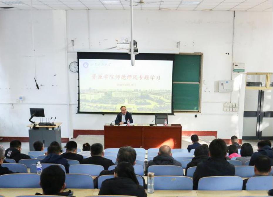 在1A107开展师德师风专题学习。学院党委书记高尚宇主持学习并讲话,全体教职工参加。