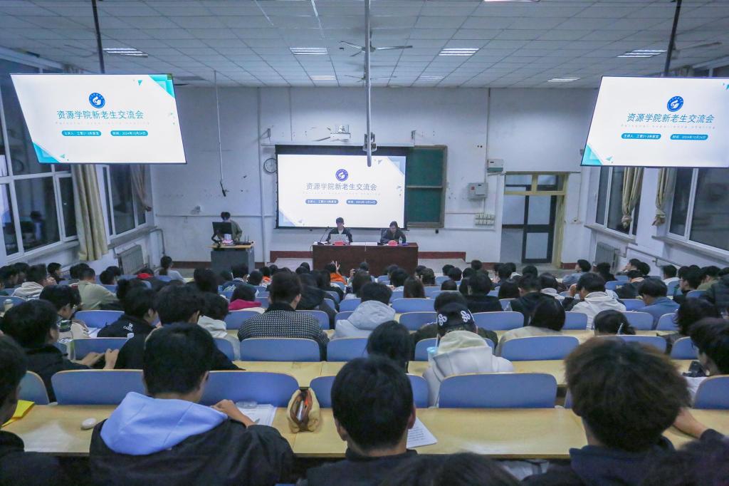 在1A107举办第二期新老生经验交流会,学院2021级优秀学生代表朱家宝和贾盛琰担任主讲人,2024级全体新生参加。