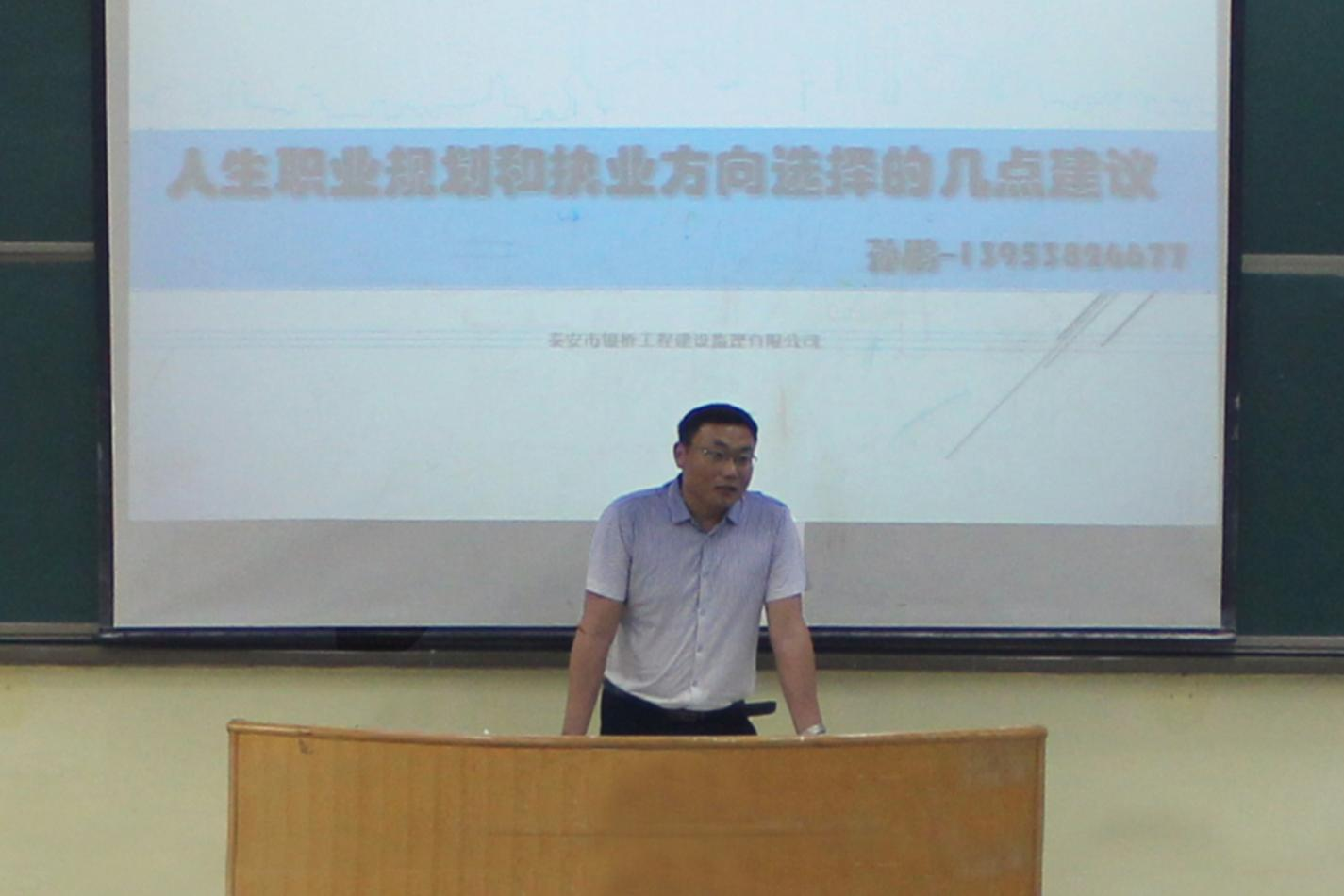 在5#206举办复兴大讲堂第7期--《谈职业规划和执业方向的几点建议》专家讲座。本次讲座由学院副院长李楠主持,特邀国家注册监理工程师、高级工程师、山东省评标专家孙鹏担任主讲人,学院同学积极报名参加。
