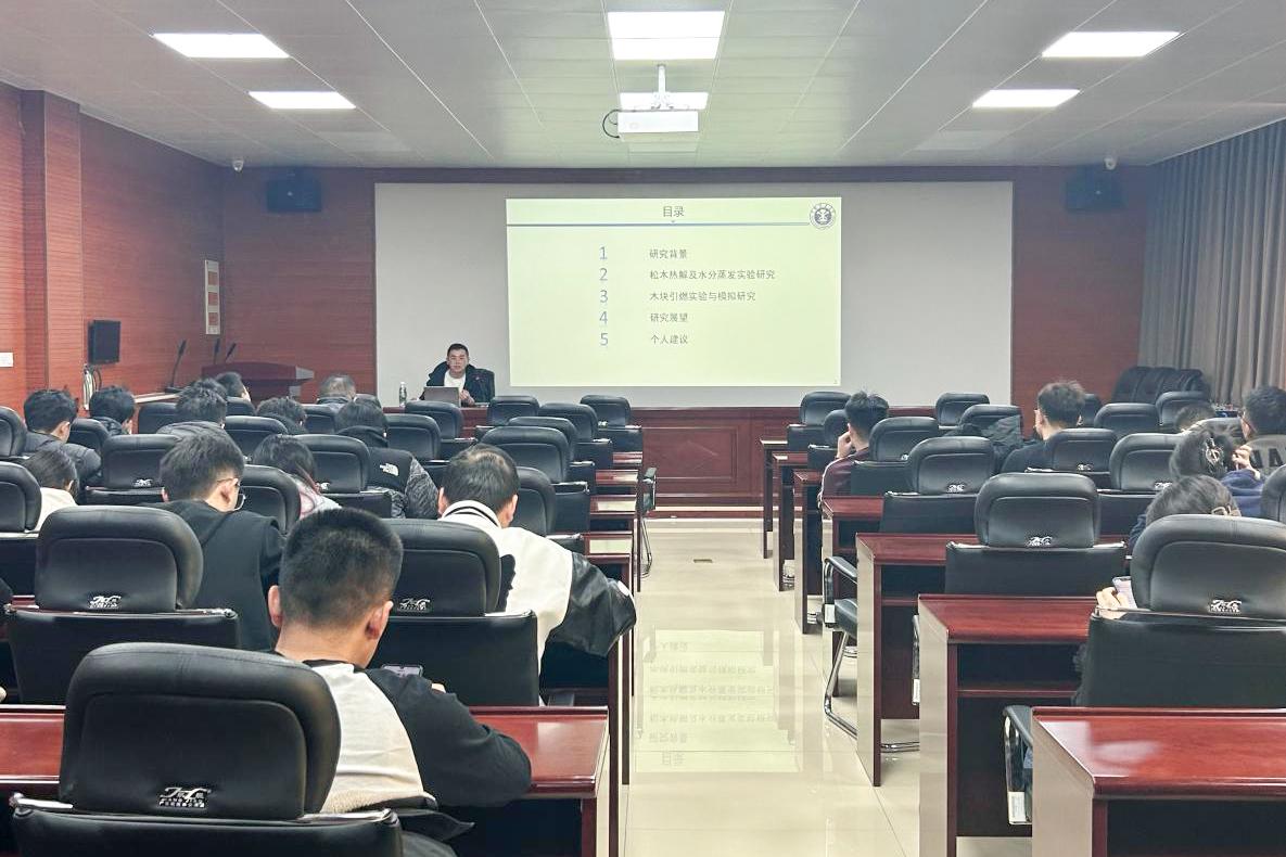 邀请中国矿业大学安全工程学院在读博士、奥克兰大学联合培养博士陈凡宝在2号楼201会议室作“森林火灾防灾减灾基础研究—块状木材燃烧模拟方法”报告会,学院部分研究生参加。