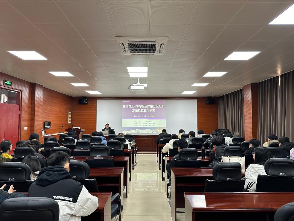 博士(后)吕昊在东校园2#201为研究生作“非线性土-结构相互作用分区分析方法及其应用研究”报告会,学院相关专业研究生参加。