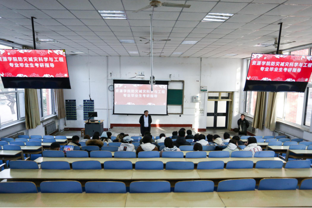 在1A107召开防灾减灾科学与工程专业毕业生考研指导会,资源工程系主任张培鹏主持,2025届防灾减灾科学与工程专业毕业生参加。